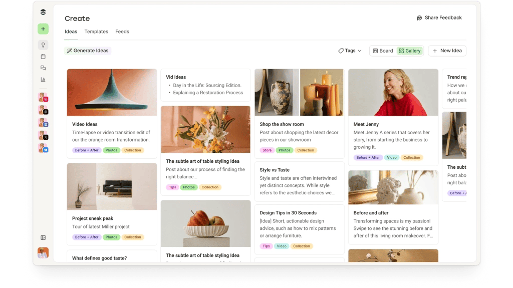 Keep your creativity flowing with an organized content backlog. Tag posts by theme, categorize ideas, and see everything at a glance so you can stay on top of your content planning without the clutter.