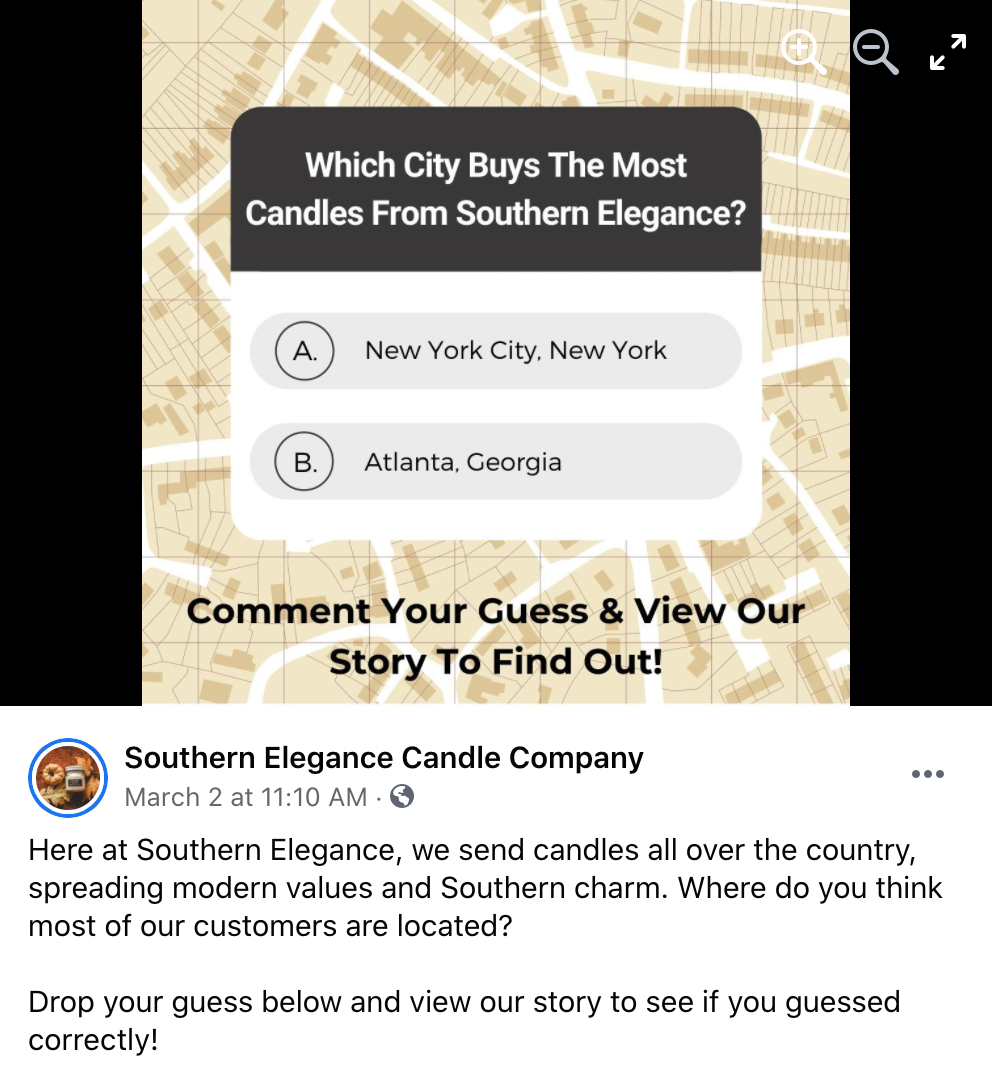 I would credit our success to our genuine interests in our audience. If someone comments on our posts, we comment back. If they call they’re met with a welcoming voice. We spark conversations through quizzes, videos, contests & giveaways.