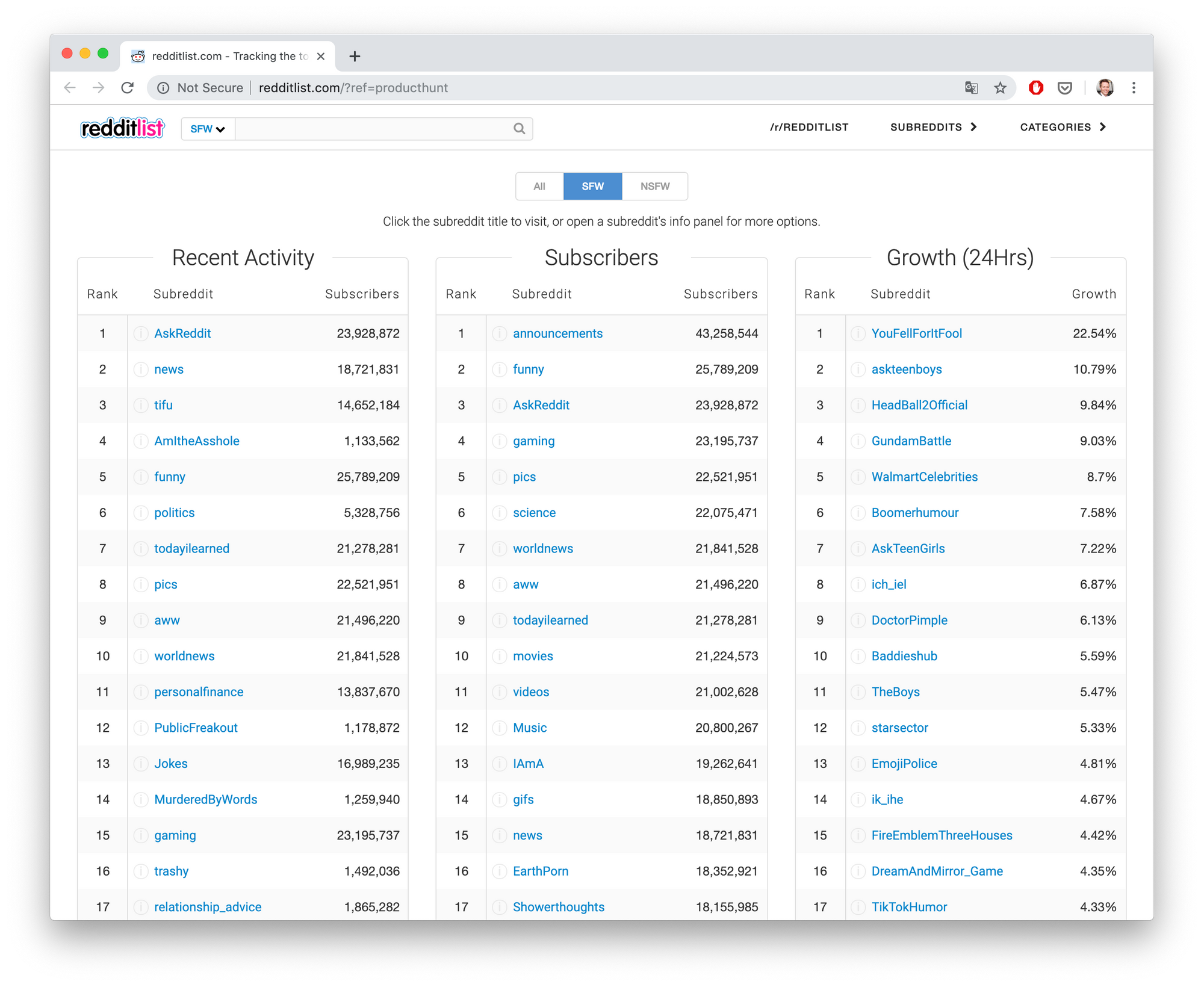 Generally, the larger the subreddit, the faster you’ll be able to gain research insights. And of course, when you get into advertising potential, the larger the subreddit, the larger the audience.
