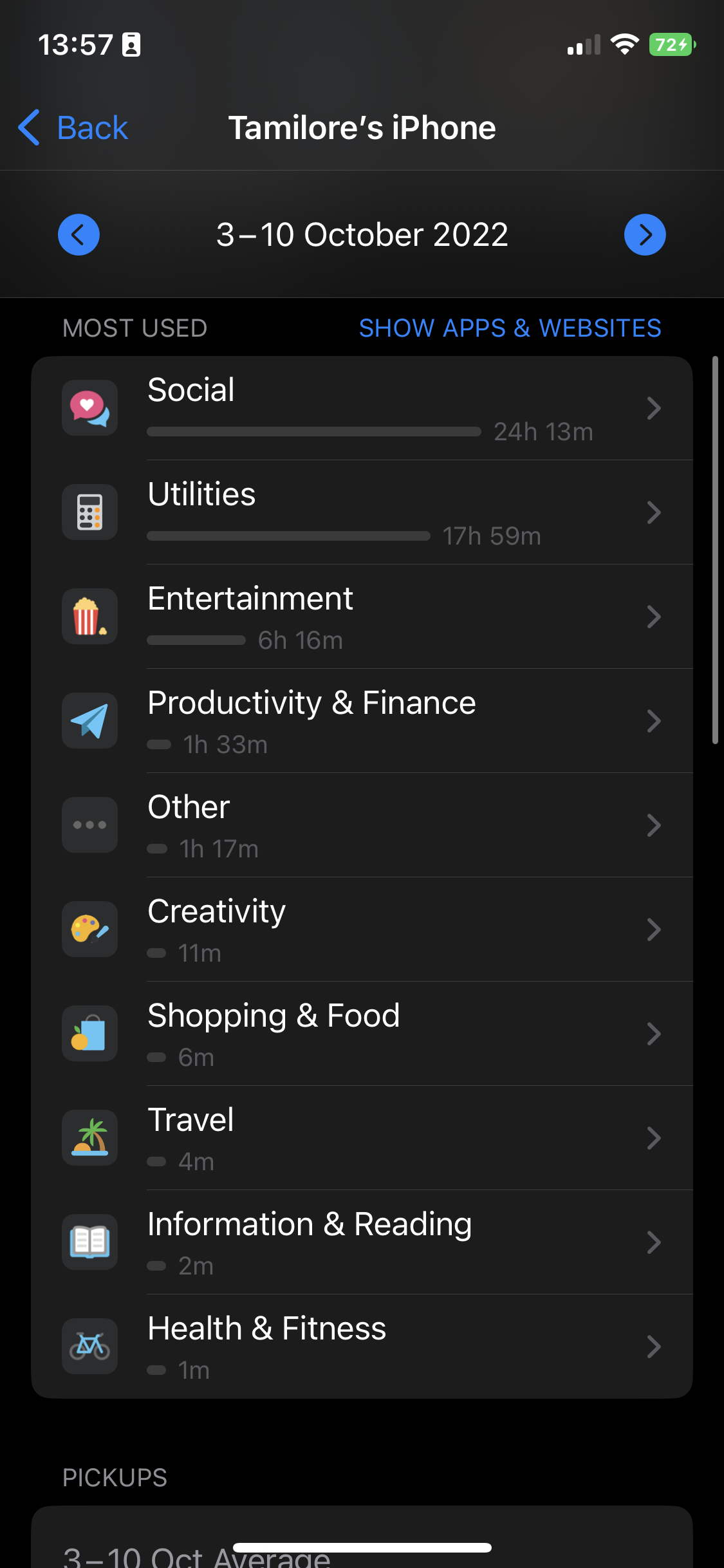 - Collected the hard data from iPhone’s ScreenTime tracking feature