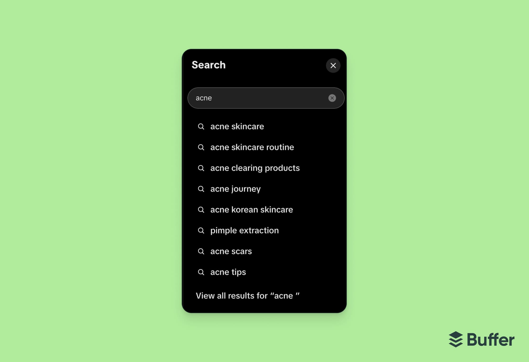 The even better news: It’s easy to optimize your TikTok posts for SEO to rank higher in search results. Start by thinking about what your target audience might be searching for when they look for products or services like yours. For example, if you sell products that help remove acne, your audience might be typing “how to remove acne,” or “best products that help calm acne.”