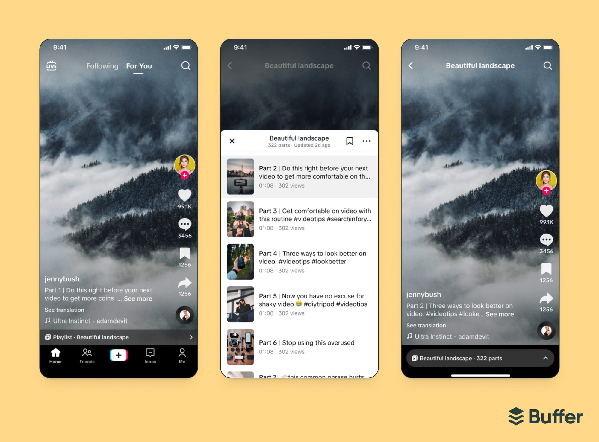 TikTok also makes it easy to organize your content series via its playlist feature. Using playlists, you can create a neat feed of your series in the right order so someone new landing on your profile can watch them without missing a single video.