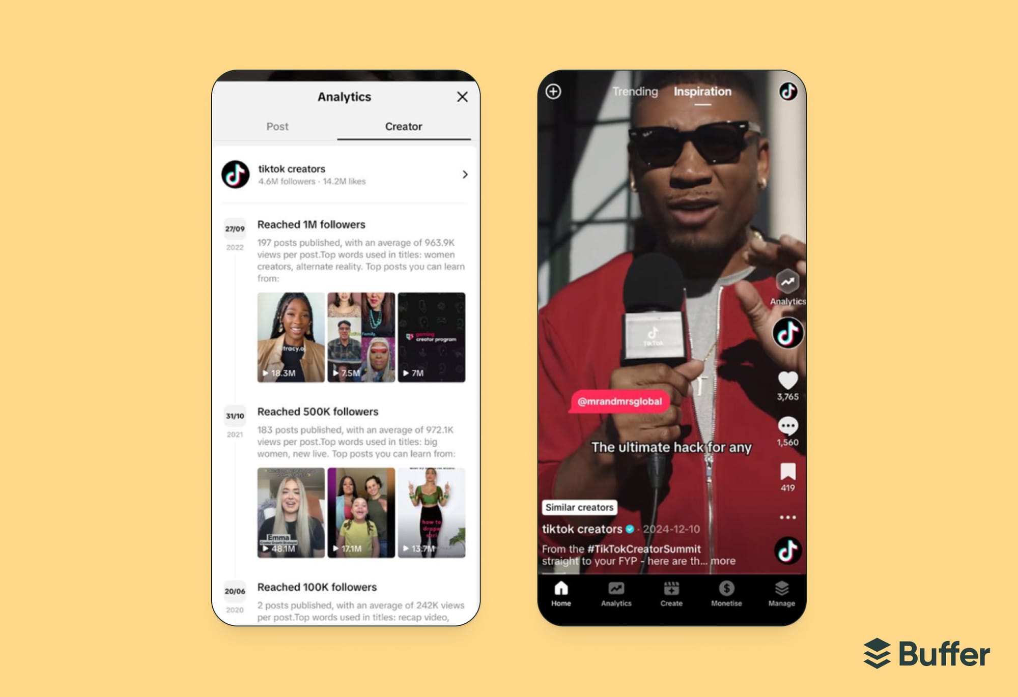 And you don’t have to stay limited to your own analytics. Practice competitive analysis using the Creator Growth tab to understand how other businesses or creators in the same niche have grown, which are their most viewed posts, and more.