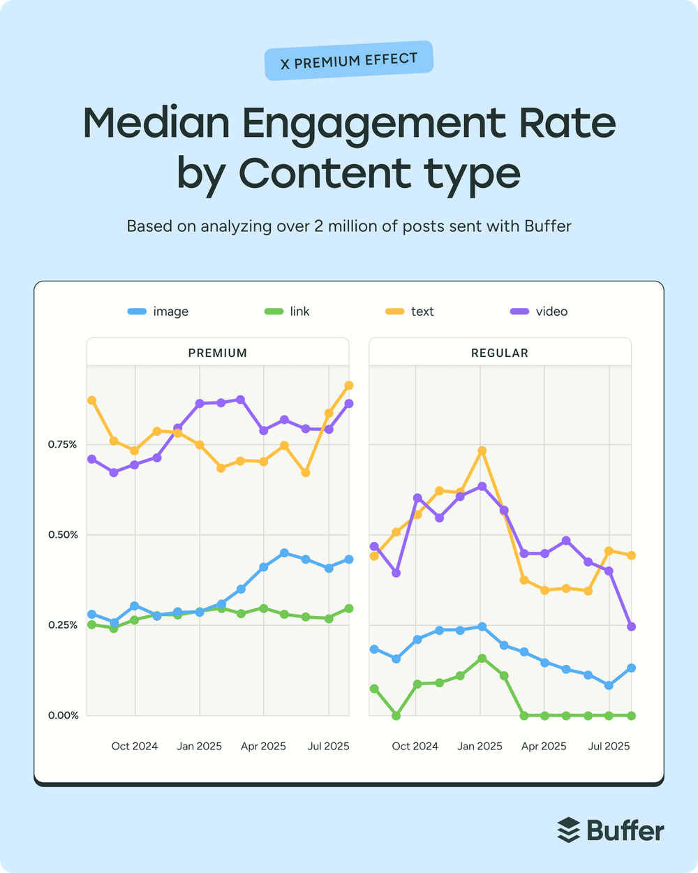 We analyzed millions (really, millions) of posts sent through Buffer on Facebook, Instagram, X, and LinkedIn to find out what type of content performs best. 📊