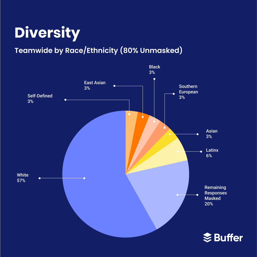 We have always been focused on building a unique and fulfilling workplace at Buffer, where we value the well-being of our customers and team, and prioritize our individual and collective growth. While diversity, equity, and inclusion (DEI) have always been a big part of our culture, it is more important than ever for organizations to bring a business approach to DEI efforts in order to foster a culture where all team members feel welcomed and valued, and everyone has an equal opportunity for success. That’s why we completed our first DEI report, compiling data collected from an internal survey and audit to give us formal insight into setting goals, measuring success, and helping to hold us accountable for continually improving our culture.