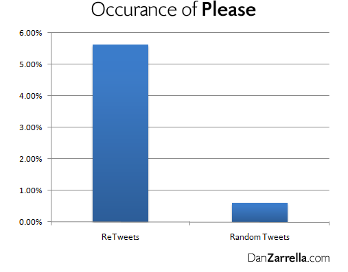 Statistics conducted by both the HubSpot blog and Dan Zarrella conclusively show that retweeted posts contain the word “Please” over 5 times as often as normal tweet.