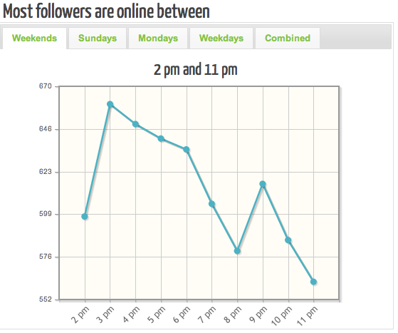 Most active Twitter users follow a lot of people, so you need to get into the “prime real estate” by tweeting at your followers most active times.