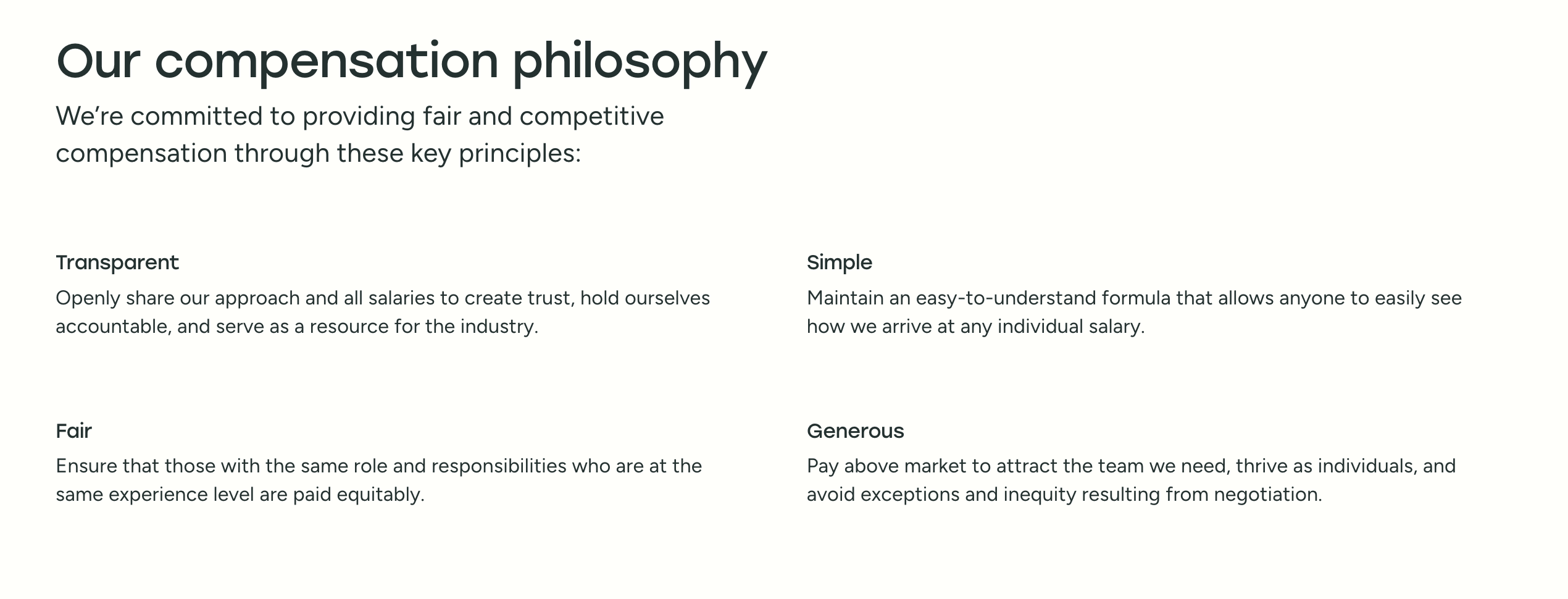 We have learned over time that compensation systems only work when people understand them and trust them. That is why we prioritize simplicity and transparency. Our goal is to create a system that feels fair, consistent, and aligned with our values.