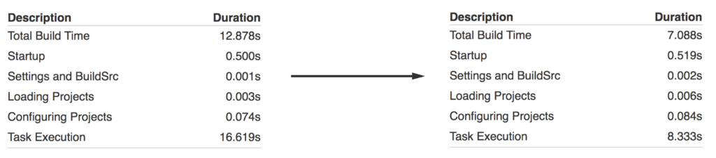 When it comes to build times, I don’t feel like this is the right project to really base an opinion off of – it’s just a small and simple boilerplate. But I imagine people will want to see the build times – so on the left we have the version with Dagger and then Koin on the right: