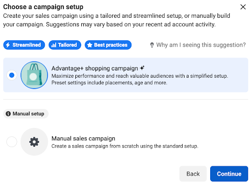 If you’re unfamiliar, Advantage+ shopping campaigns, which are a newer option in the Facebook Ads Manager, use AI to determine which of your ads should go in front of which audience segments and how to best allocate your ad spend.