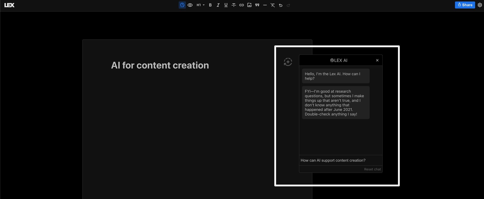 However, keep in mind a major limitation – some tools have been reported to make up information (literally a disclaimer in the Lex chatbot and on the ChatGPT homepage).