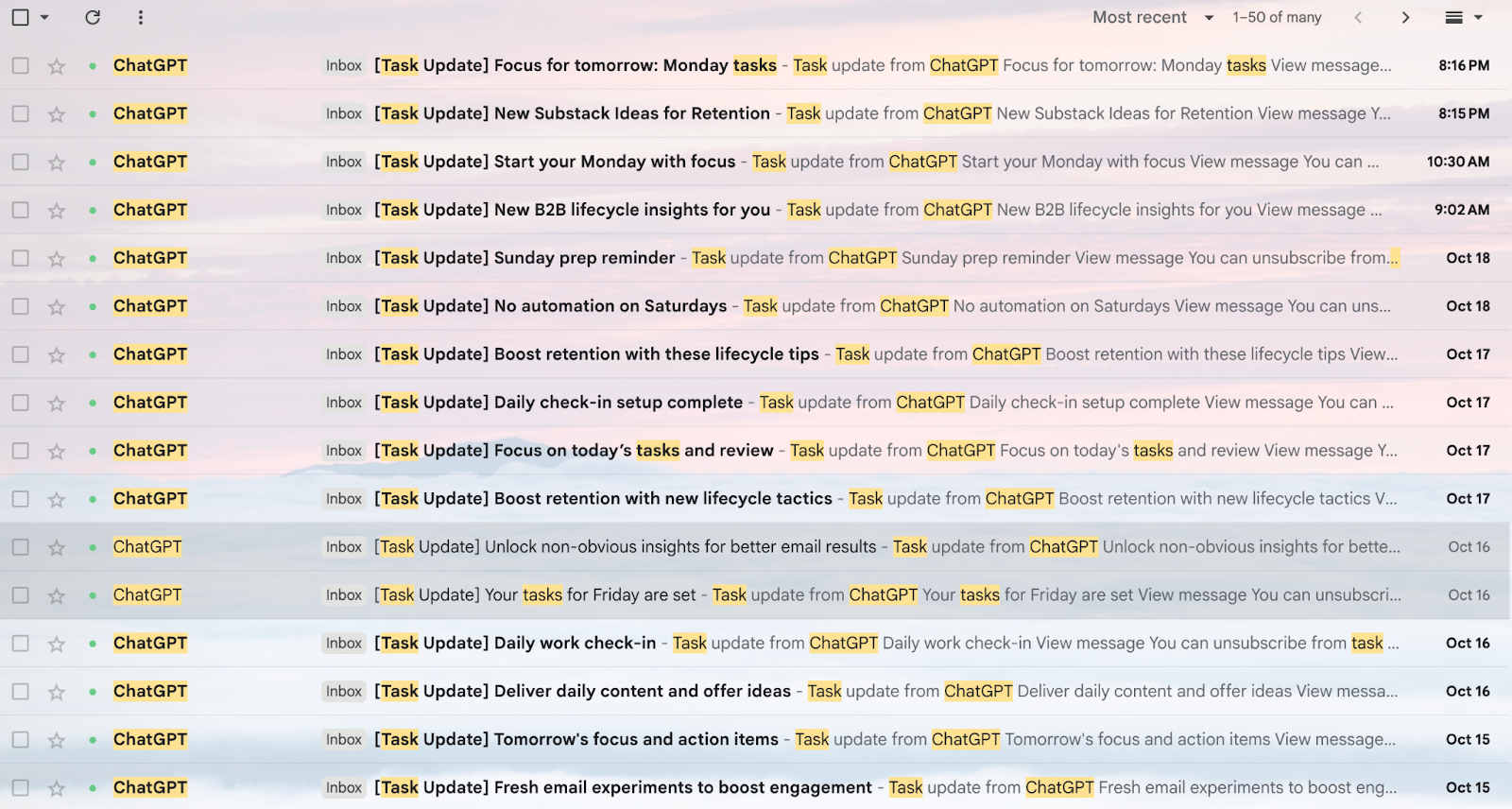 Every morning, I wake up to an email from ChatGPT with my best ideas in it, already categorized.