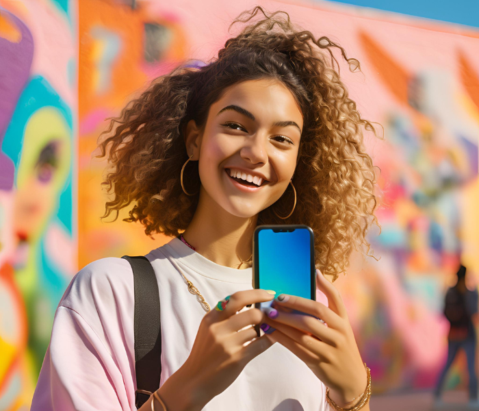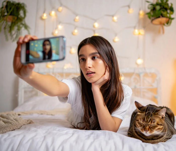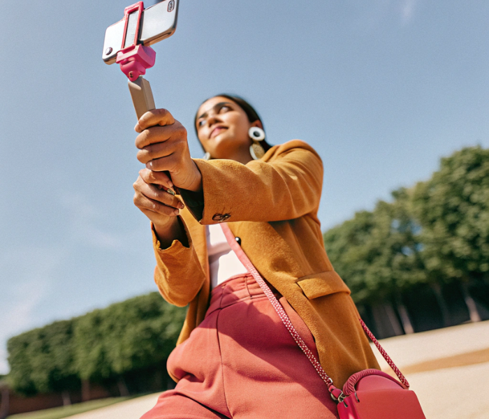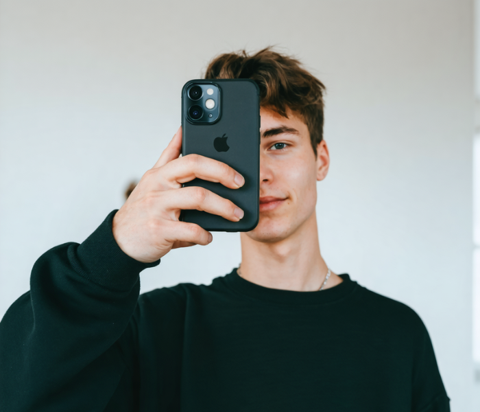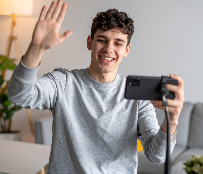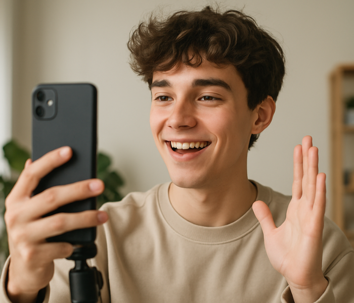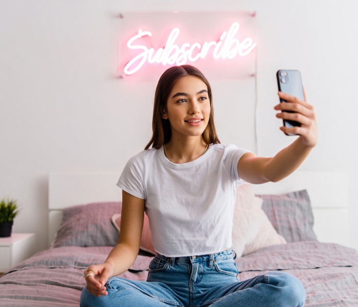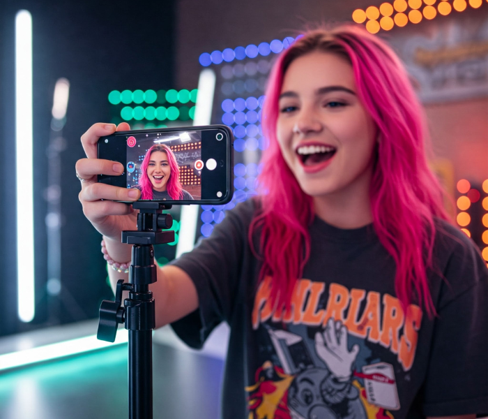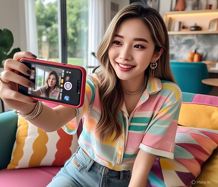 “Generate an image of a photo-realistic young, Gen-Z social media influencer filming a video with their phone in selfie mode.”