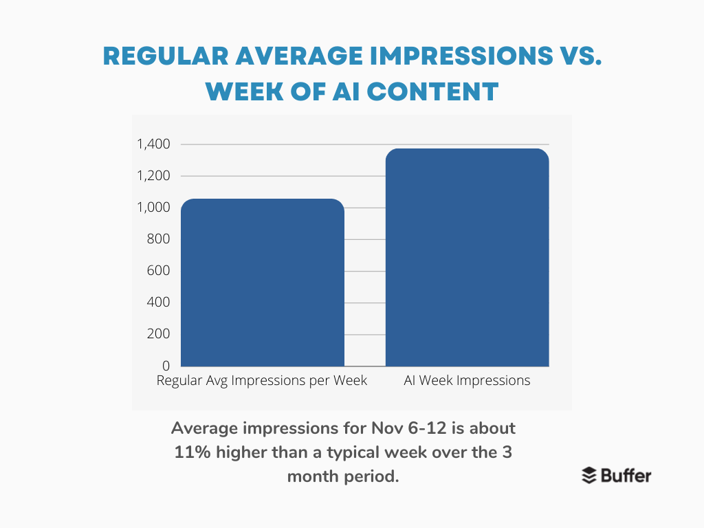 I focused on a weeklong period, scheduling all content through Buffer. This approach allowed me to analyze the performance of AI-generated content, which I did using the stats LinkedIn makes available.