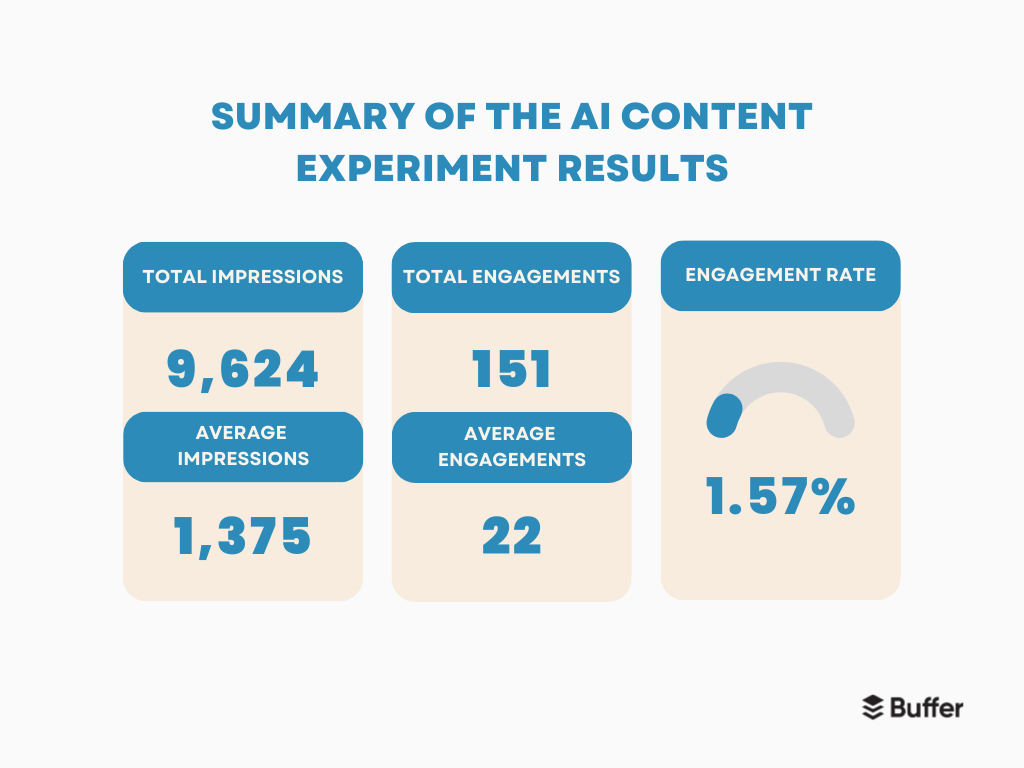 Overall, while the engagement rates could potentially be higher, the AI-written posts fared well, and all my objections are more about the quality of the content.