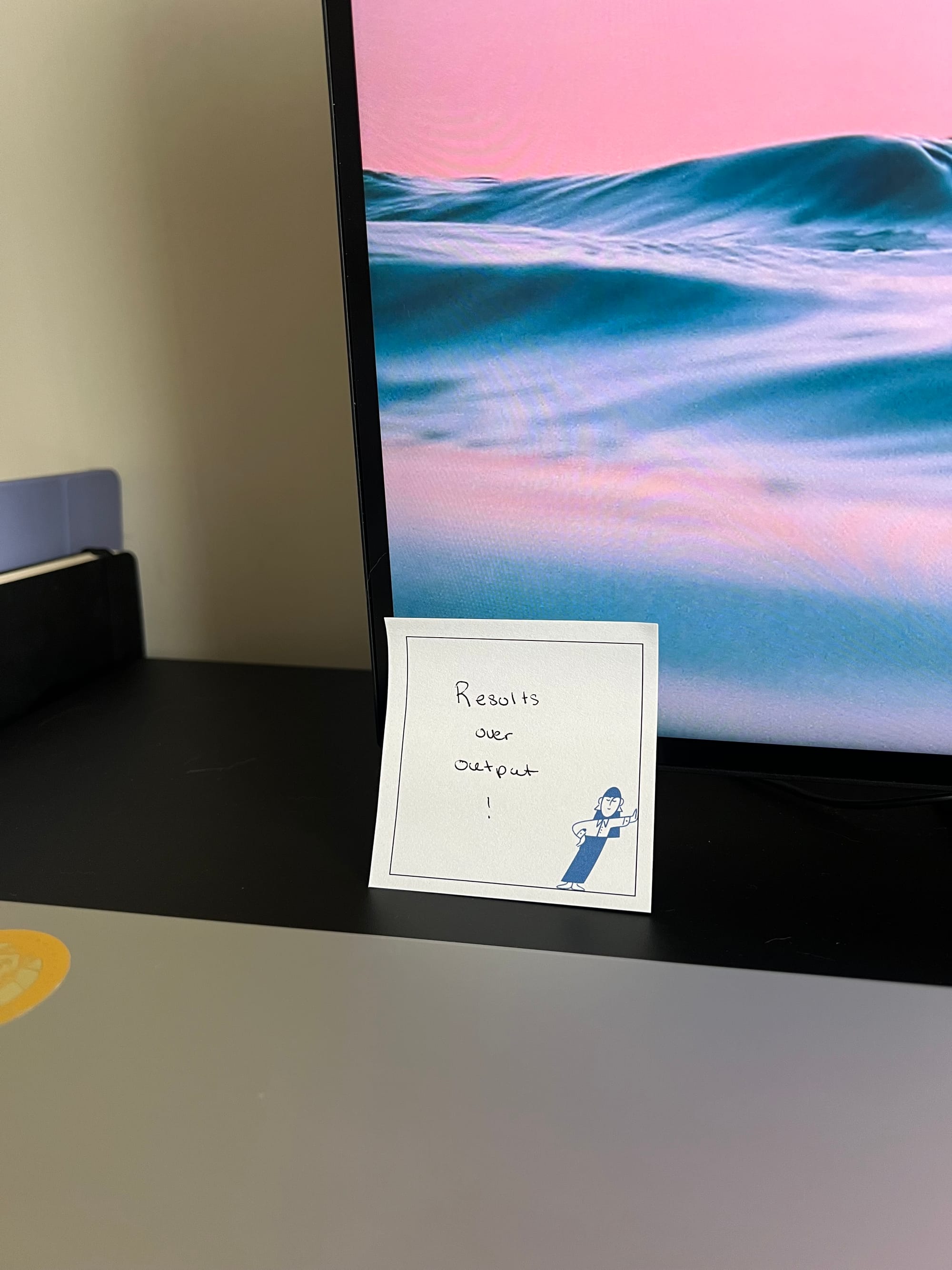 After I shared my plan, Caro very kindly challenged me to ‘think about results over output.’ I broke out a sticky note, wrote “Results over output!” and stuck it on my monitor. That was my focus from then on. This completely changed my plan. I needed to look at the data, figure out what was resonating, and do more experimenting to get better results.