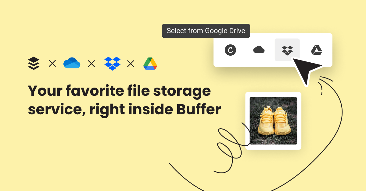 Now, with just a few clicks, you can import content directly into Buffer from Dropbox, Google Drive, and One Drive. Alongside our recent Canva integration — it has become easier than ever to create and publish social media posts without having to leave Buffer.