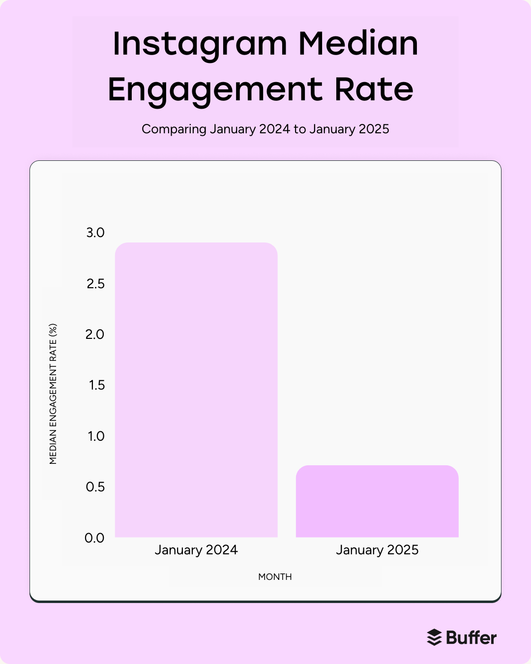 In January 2024, Instagram’s median engagement rate was 2.94%. By January 2025, it had adjusted to 0.61%.