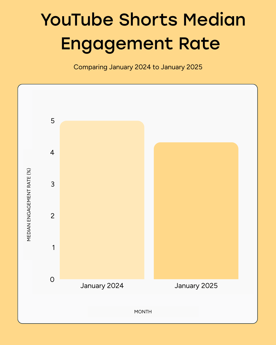 YouTube Shorts’ 4.41% average engagement rate puts it just behind TikTok, but its median engagement rate has risen from 3.95% in January 2024 to 4.71% in January 2025.