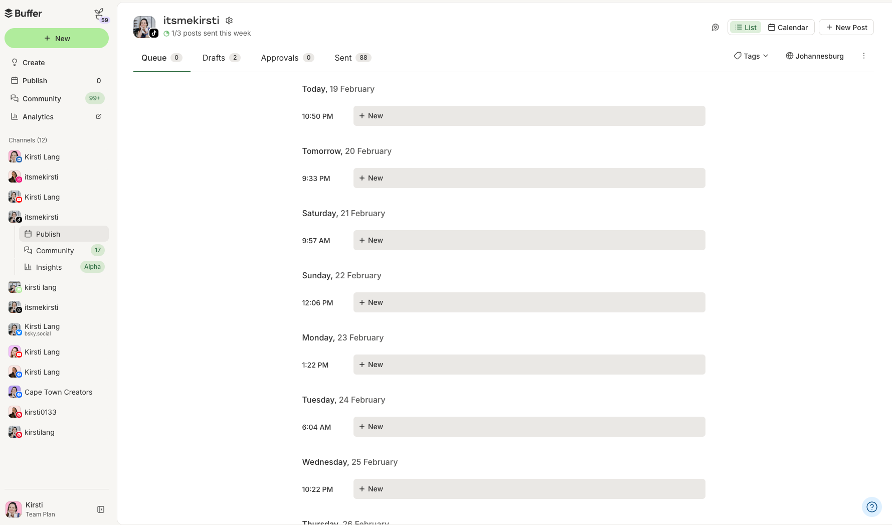 This is where social media scheduling tools like Buffer shine. Experiment by systematically going through the times on the list above, scheduling a TikTok, and tracking its performance to see what works best for your specific audience.
