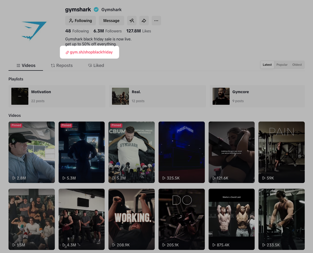 Gymshark has also made it really easy for shoppers to take advantage of the Black Friday deals, putting the sale link front and center on all their social bios.