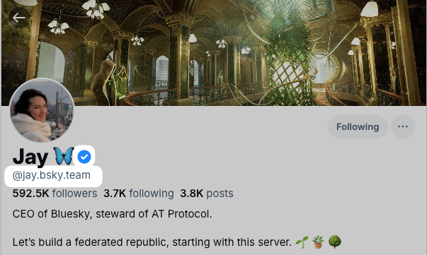 “I own jaygraber.com, so if I set my handle to @jaygraber.com on Bluesky, I can tell my friends to find me at this stable handle across any AT Protocol social site that supports custom domains,” Jay explains.