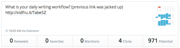 Most of the tweets on my personal account get 3-5 clicks. They might get a retweet or the occasional favorite or two.