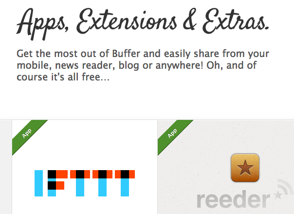 Of course, we are super excited to already have a ton of other partnerships in the pipeline that we will announce real soon for you. At the same time, at the end of the day it is up to you to tell us, where you want to be able to Buffer from, so we can focus on those integrations that matter the most. There are of course also a ton more other integrations and apps available you can check out.