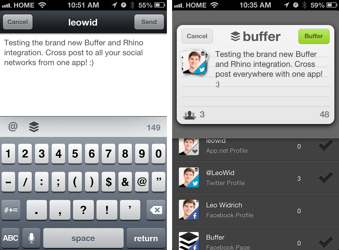 As you can already Buffer your App.net posts, Rhino now also features a brand new integration with Buffer. You can easily share all your reposts via Buffer and add them to your queue here:
