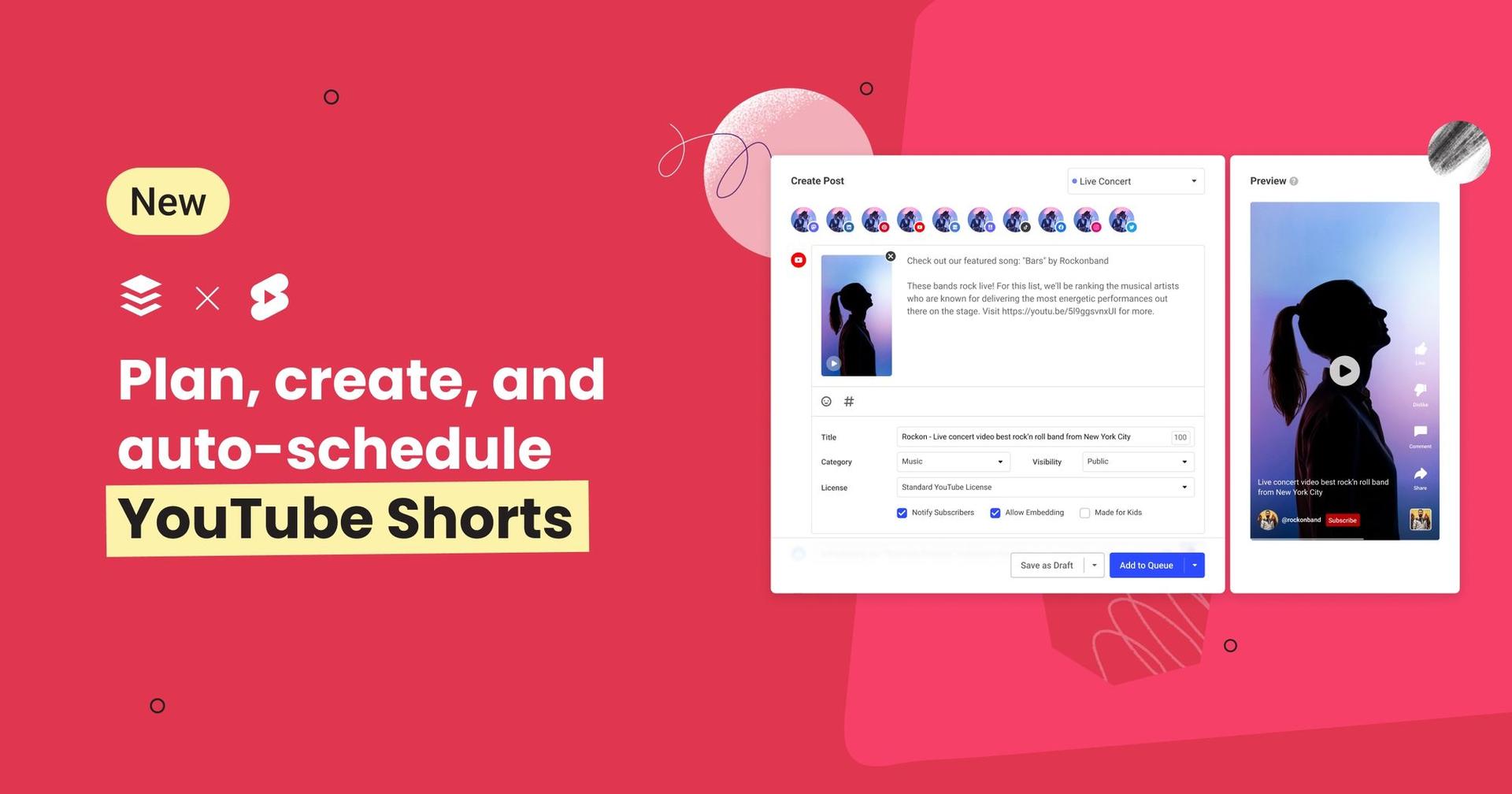 You can now schedule YouTube Shorts with Buffer! Grow your audience with content planning and scheduling features, and share vertical videos to all of your favorite platforms in one place.