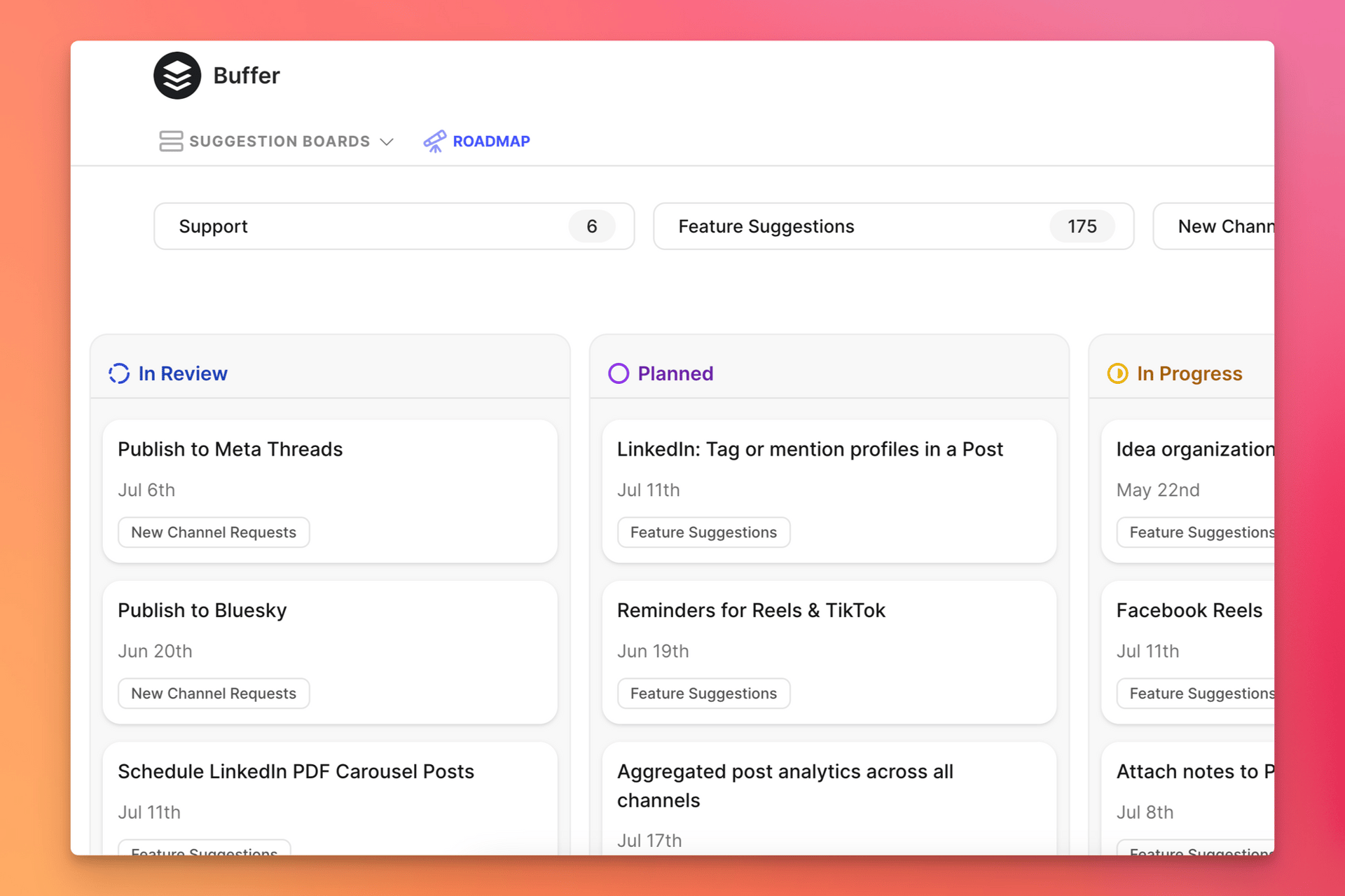 We have a brand-new feedback hub and roadmap! See every feature request that has been submitted by the community, vote or comment on your favorite ideas, or submit your own suggestion. We'll notify you when a feature goes from being “Planned” to “In Progress” to “Complete”.