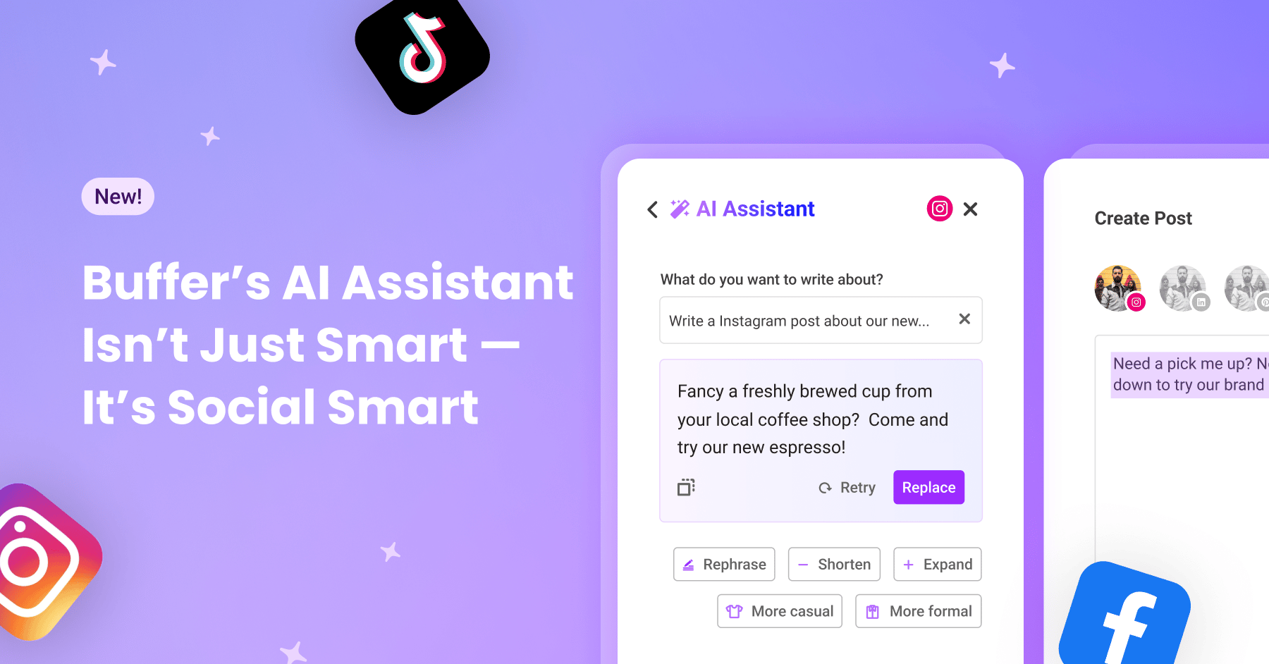 Buffer’s AI just got smarter. Powerful new functionality helps you rephrase, summarize and even expand your content.