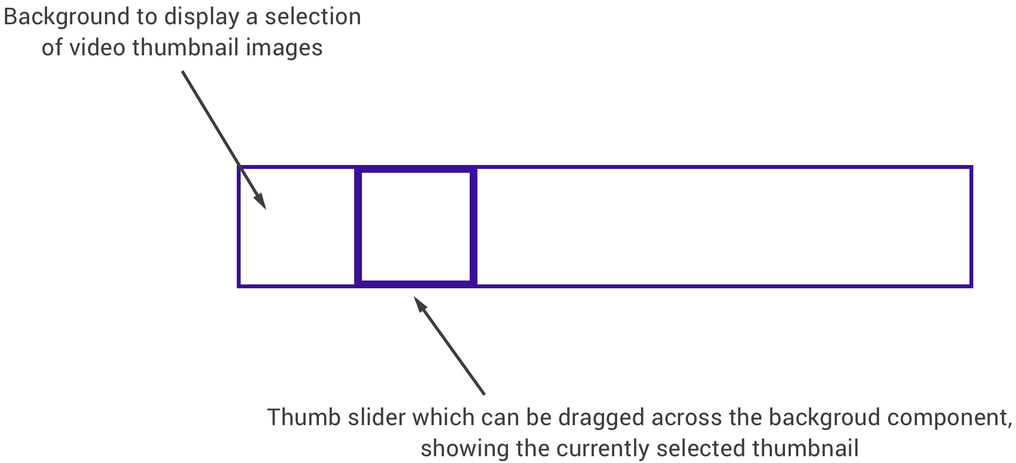 The SeekBar style component that we required in itself doesn’t come across as too complex, overall it would end up consisting of two core parts which were the video timeline (a background essentially made up of thumbnails) and a thumb which would be used by the user to scrub through the selected video:
