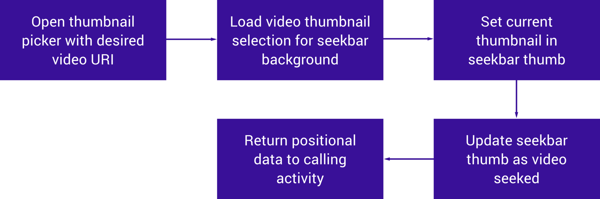 - With the above in mind you also become a bit restricted when it comes to larger videos. For example, if the user loads in a video that is 8 minutes long you’re going to still want to show a regularly updated thumbnail on the SeekBar – otherwise it will appear as though the thumbnail isn’t changing. Without hitting the MediaStore for thumbnails every second within the progress, you’d have to keep a reference to all these thumbnails. And if you didn’t want to load them all upfront like that, then loading them on the fly in chunks would be a bit fiddly – what if the user skipped straight to 75% of the progress, and then back to 50%? There are a few situations that make that idea a bit complicated.