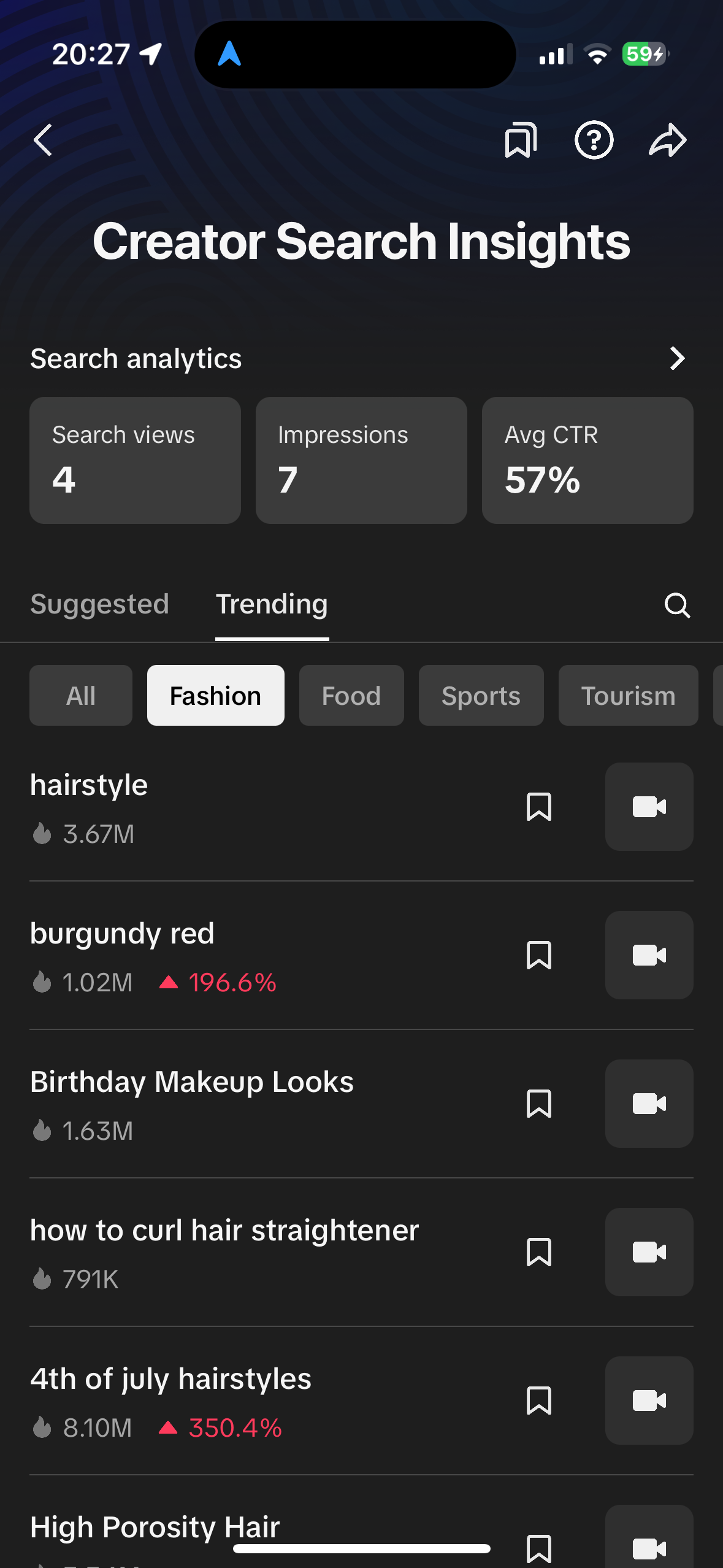 Finally, while it should be added automatically if you create your video straight from the TikTok Creator Search Insights homepage, make sure you always add the hashtag #creatorsearchinsights to your posts when drafting your caption.