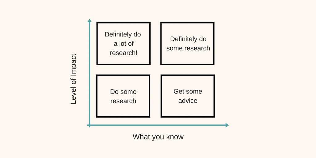 This is the most problematic area because it’s easy to confuse what we know with what we think we know. Even if we do know a lot about a subject, it’s always wise to conduct some research when it’s a high impact decision.