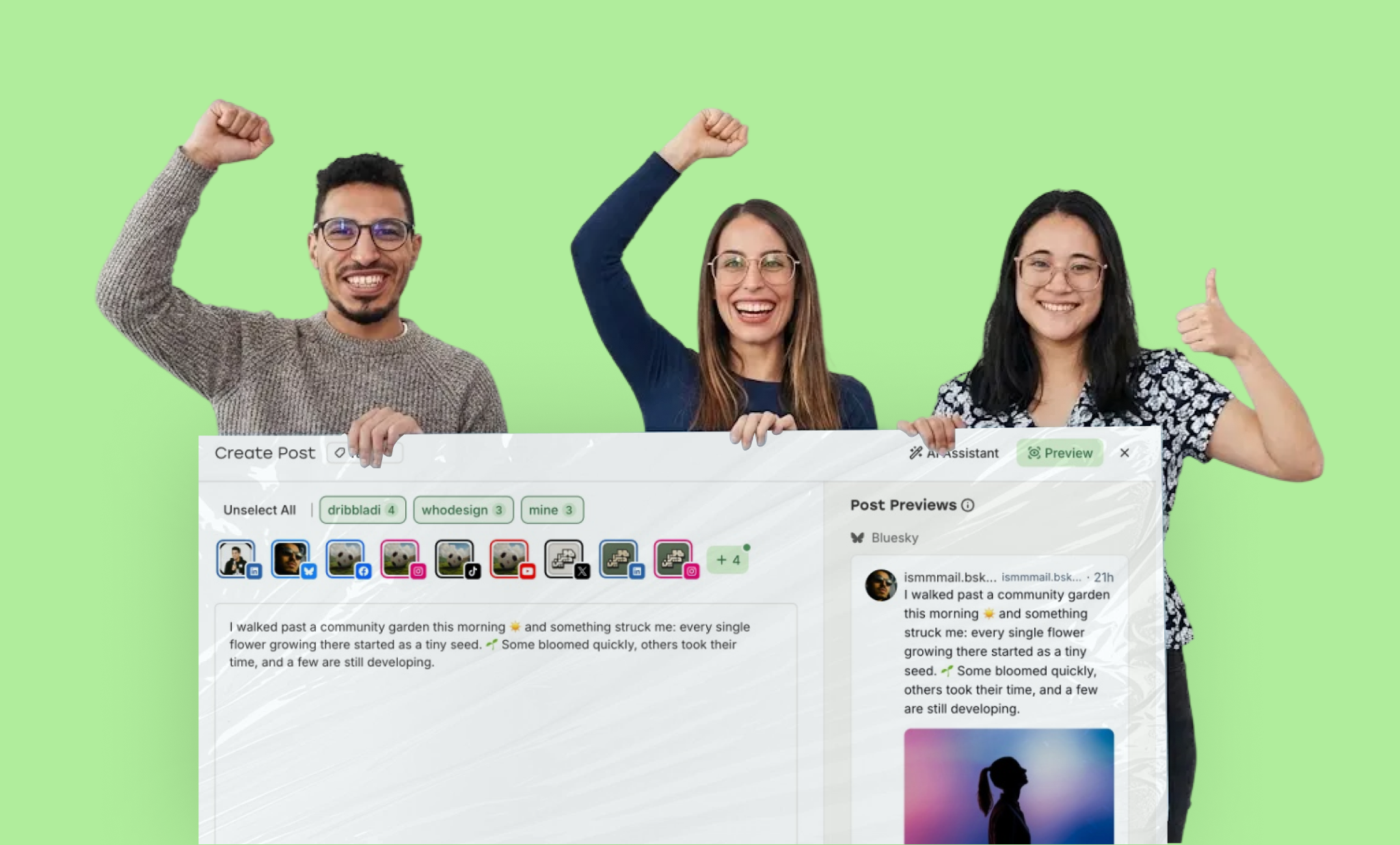 Beyond individual improvements, the team updated the overall look and feel of previews across Mastodon, TikTok, X, Instagram, Threads, YouTube, and Bluesky. These were small, deliberate changes, but together they make creating, reviewing, and approving posts feel clearer, more accurate, and more modern.