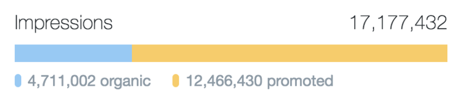 Out of 17 million impressions, 4.7 million were organic — so in other words, 27.4 percent of reach was free vs 72.6 percent paid.