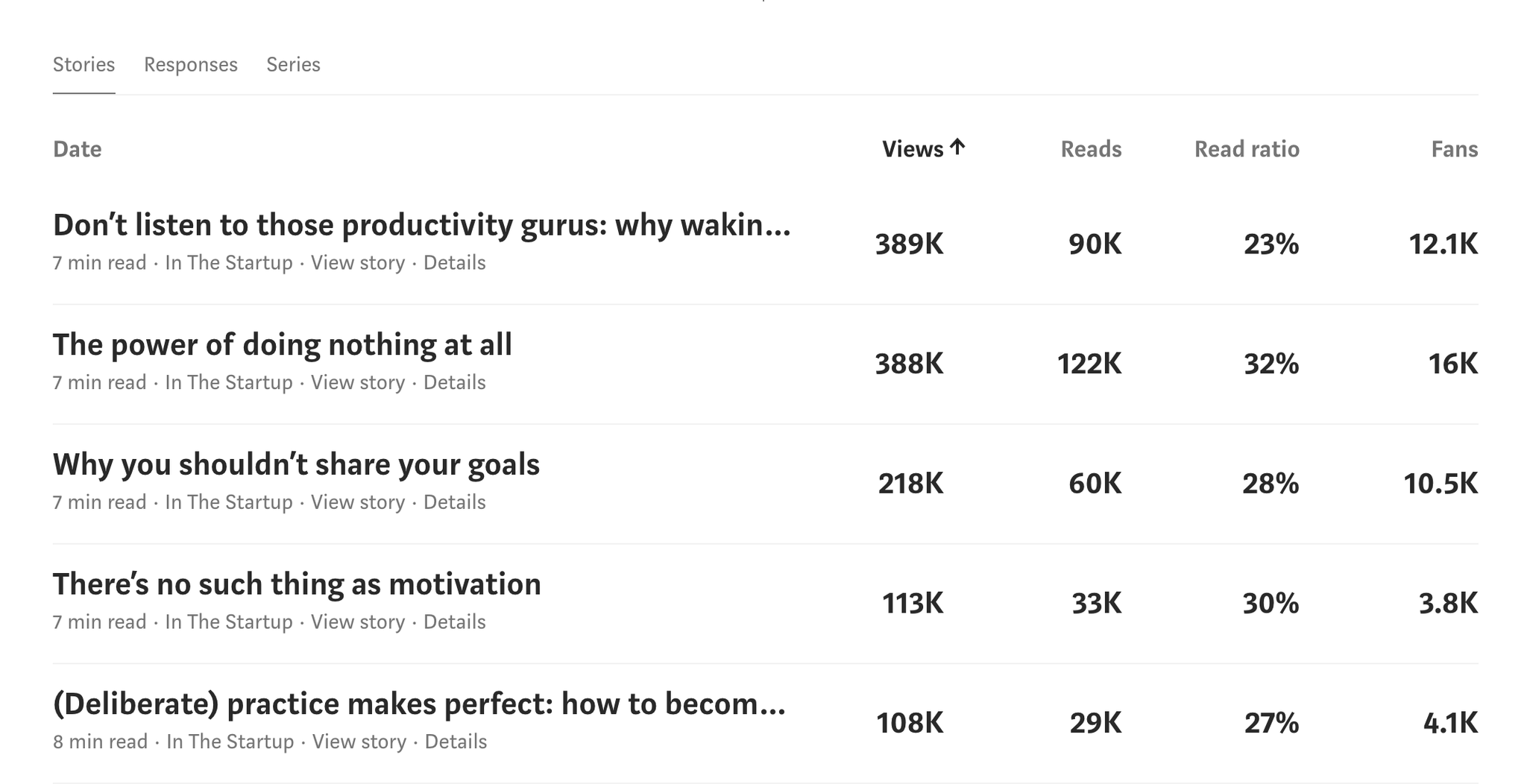 In order to craft the Twitter thread, Aytekin used his Medium analytics for inspiration: