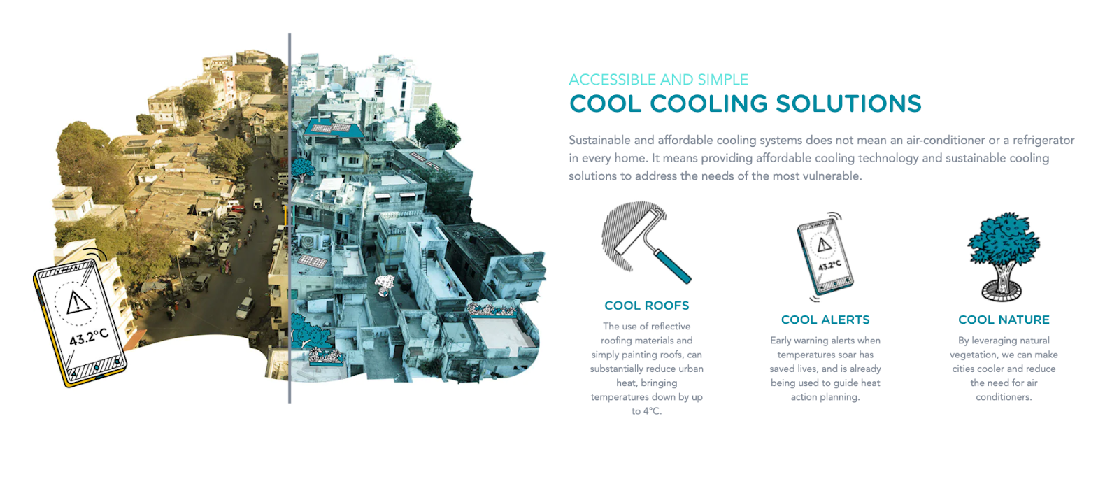 As part of the campaign, we created a microsite with Greenhouse PR, with different cooling case studies—from cool rooftops to farming innovations—and provided a nicely illustrated toolkit that can be used by anyone and everyone to start the conversation on sustainable cooling. Check it out at thisiscool.seforall.org!