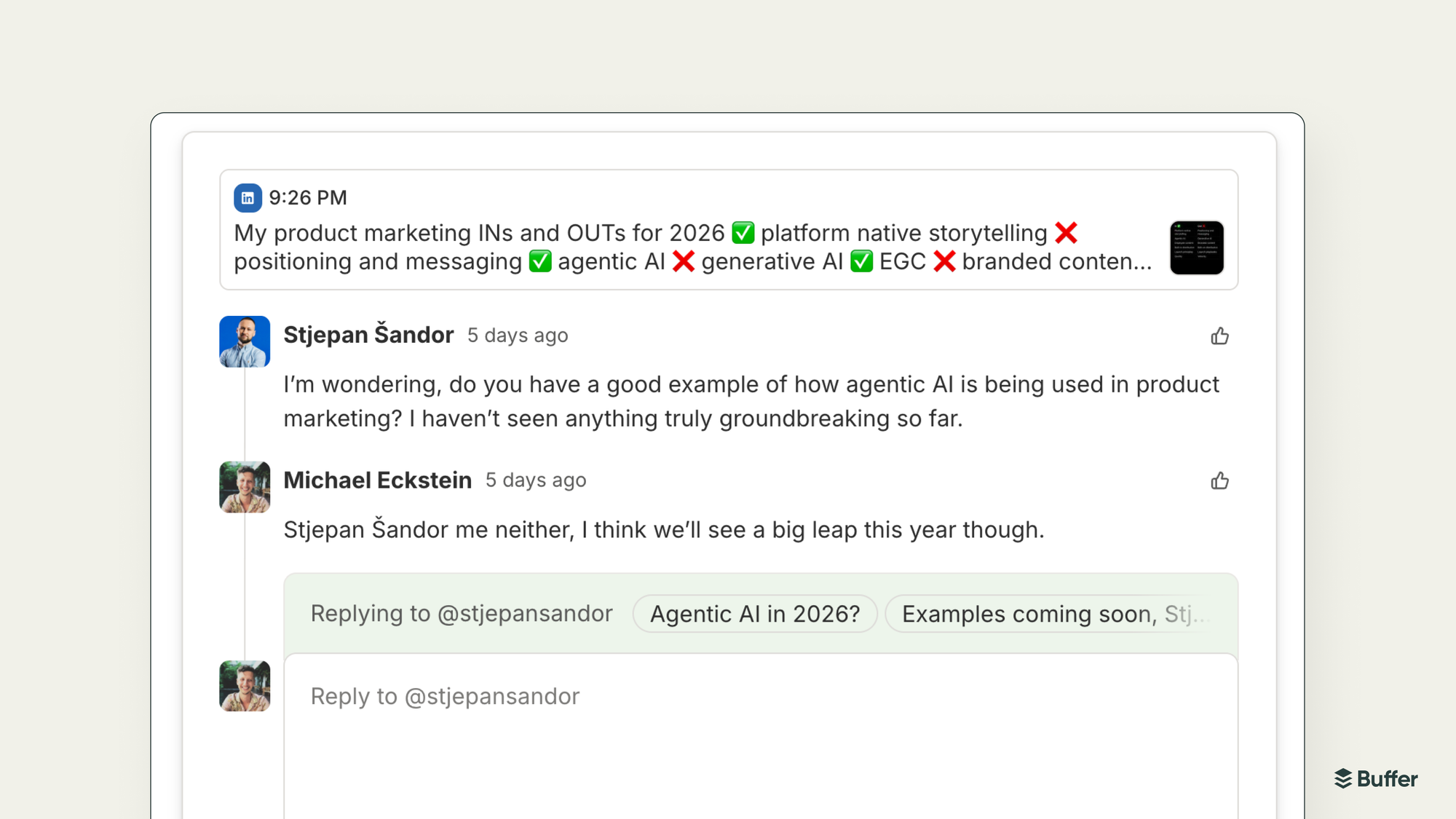 And we also shipped Feeds, which uses RSS to pull content from websites, blogs, and YouTube channels directly into Buffer. Good for content curation or just keeping an eye on what others in your space are publishing.