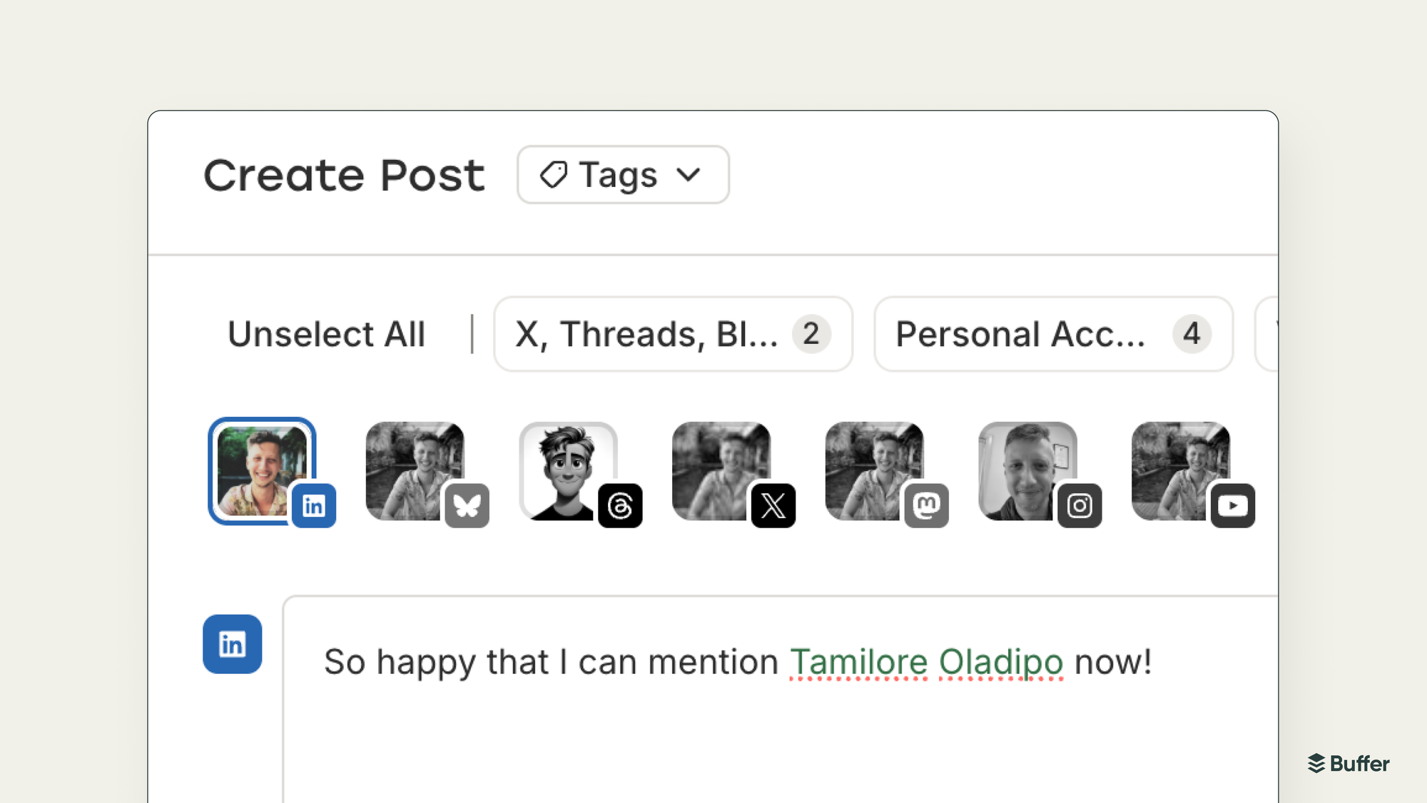 Buffer is a social media productivity tool for creators, small businesses, freelancers, and agencies. A place to schedule posts, manage comments, and track performance across Instagram, LinkedIn, Threads, Bluesky, Facebook, X, TikTok, YouTube, Mastodon, and Google Business Profiles without getting sucked into the feed.
