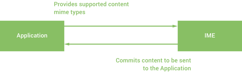 So for example, let’s say you have an application which allows the user to input content via an IME. The user will tap on that EditText (or it will automatically gain focus) the EditText will send a list of support MIME types (in the form of contentMimeTypes) so that the IME is aware of what rich content can be provided to the EditText.