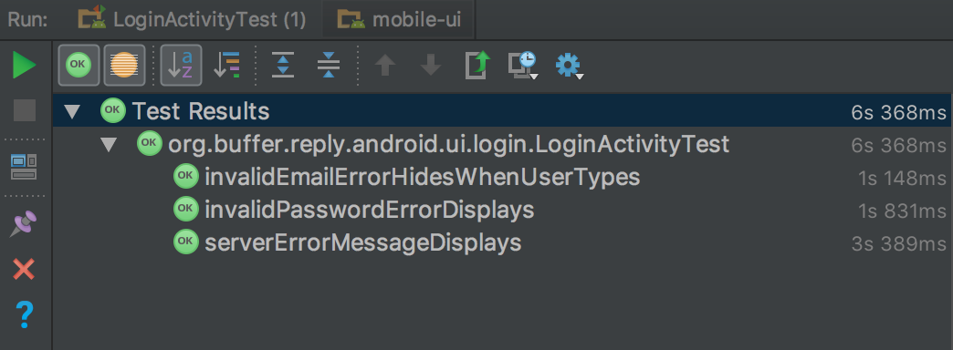 It’s important to note that this is an incredibly simple example that we’ve applied TDD to. Imagine if we’re developing a complex screen, such as a content feed where multiple actions can be performed on the items in the feed (like in the Buffer for Android app) – in these cases, there’s a lot of different features that we will be implemented in a given activity/fragment. These situations are where TDD in UI test will shine even more as what could end up in us writing overly-complex code for these features can be reduced to implementations that satisfy the given tests that we have written.