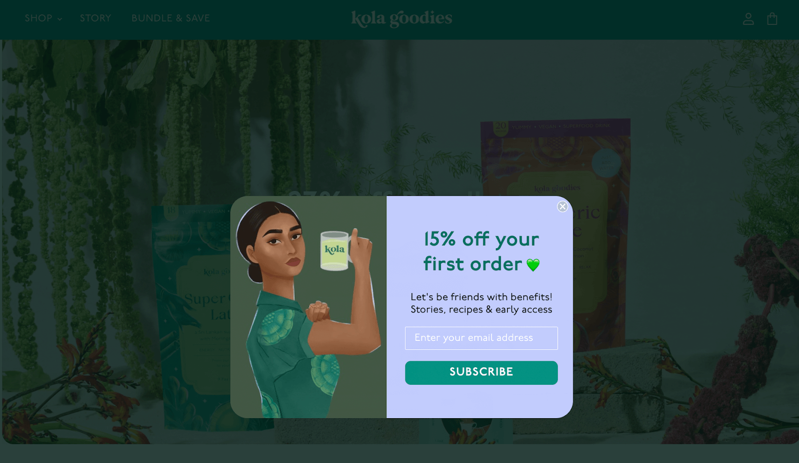 Sri Lankan tea brand Kola Goodies’ website includes a pop-up for their newsletter. Their CTA offers an incentive as well: 15 percent off for users who subscribe.