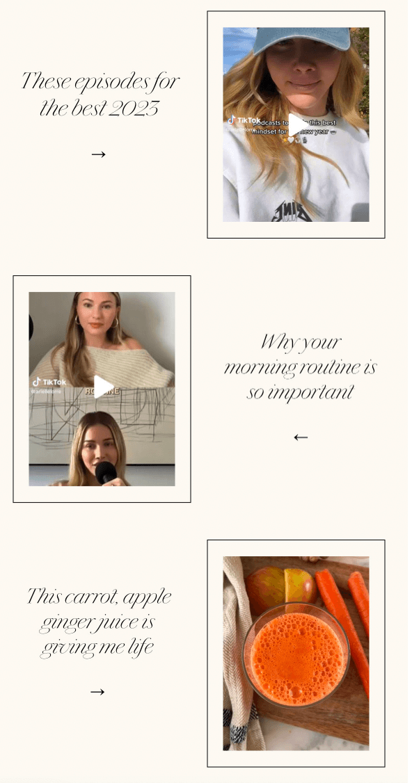 You want your newsletter to be easy on the eyes of your readers. This means that the format is aesthetically pleasing and the content is readable. Influencer Arielle Lorre’s newsletter has an easy-to-follow design that also makes it quick and easy for readers to find information.