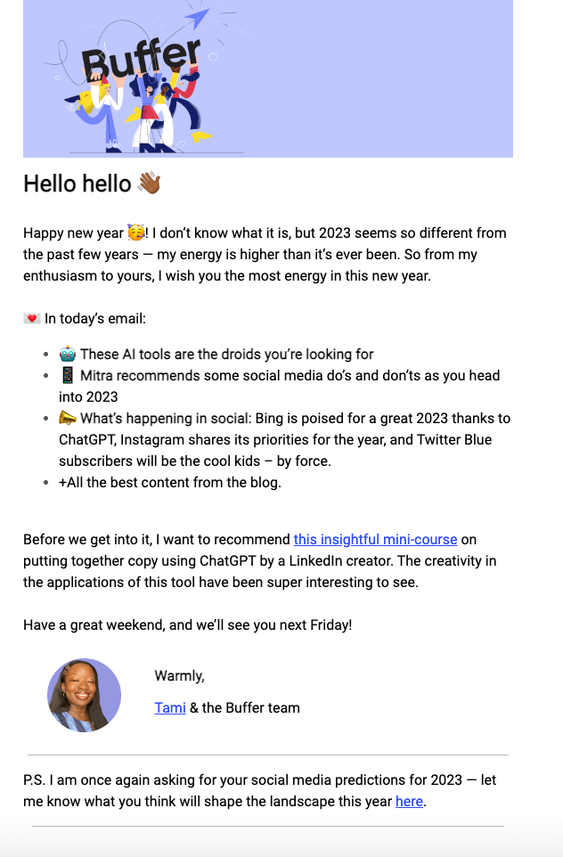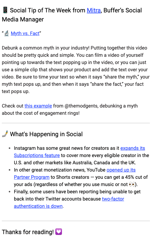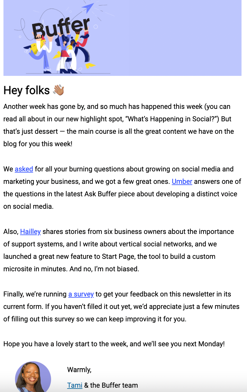Tami has recently spearheaded an effort to revamp Buffer's weekly social media newsletter to make it more valuable for our readers. In doing so, we’ve adjusted a few things.