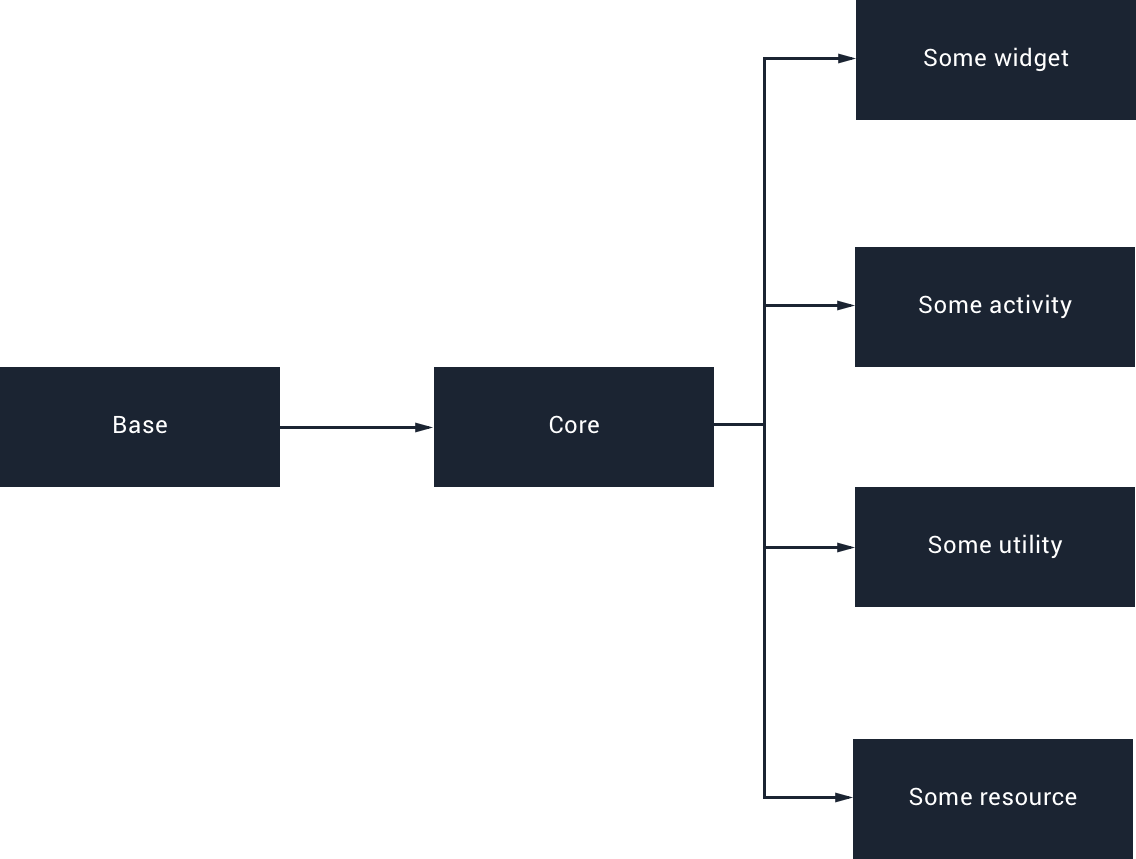apply plugin: 'com.android.library'Within our core module we will need to declare some dependencies. The easiest way of doing this is by simply moving over the classes which will be used by your base and feature module, following by seeing what it is that needs to be declared as a dependency with IDE errors. Whilst it may be tempting to use the api declaration to declare these dependencies, this is known to slow down build times. We make use of a BuildSrc module that contains our dependencies, along with their versioning, so that all of our modules can access these.