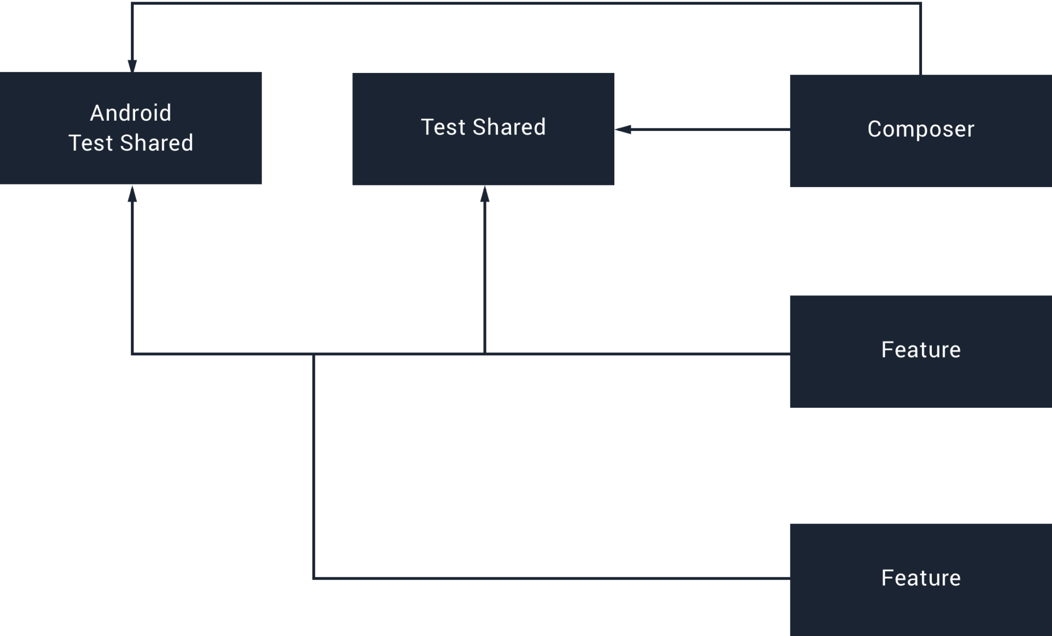 When it comes to tests, you’re likely going to have both unit and Integration tests scattered throughout different modules. Because of this, it’s likely that there’s going to be some crossover when it comes to Data Factory classes or Matchers used during Integration tests. For this it’s good practice to create two extra modules – one for shared Unit Test classes (Test Shared) and Integration Test classes (Android Test Shared). These can then be referenced as dependencies for your tests so that you can reuse this code throughout your project.