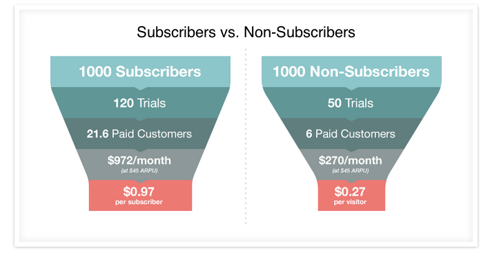 When we wrote about the ROI of blogging, we didn’t just say that the ROI was positive, or that we made money from the blog. We bared our data to the world and showed how blog subscribers stacked up against non-subscribers.